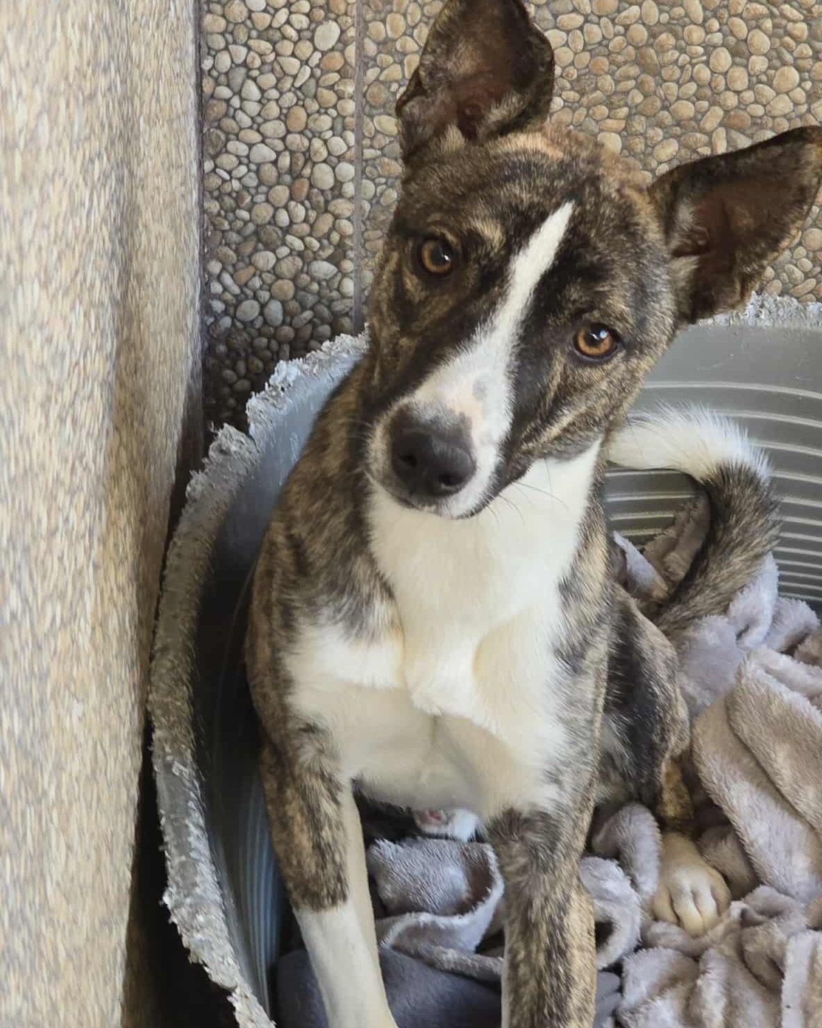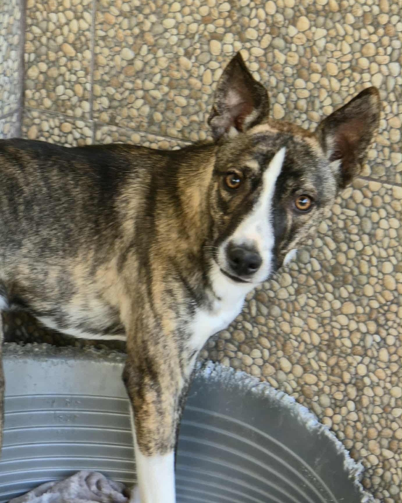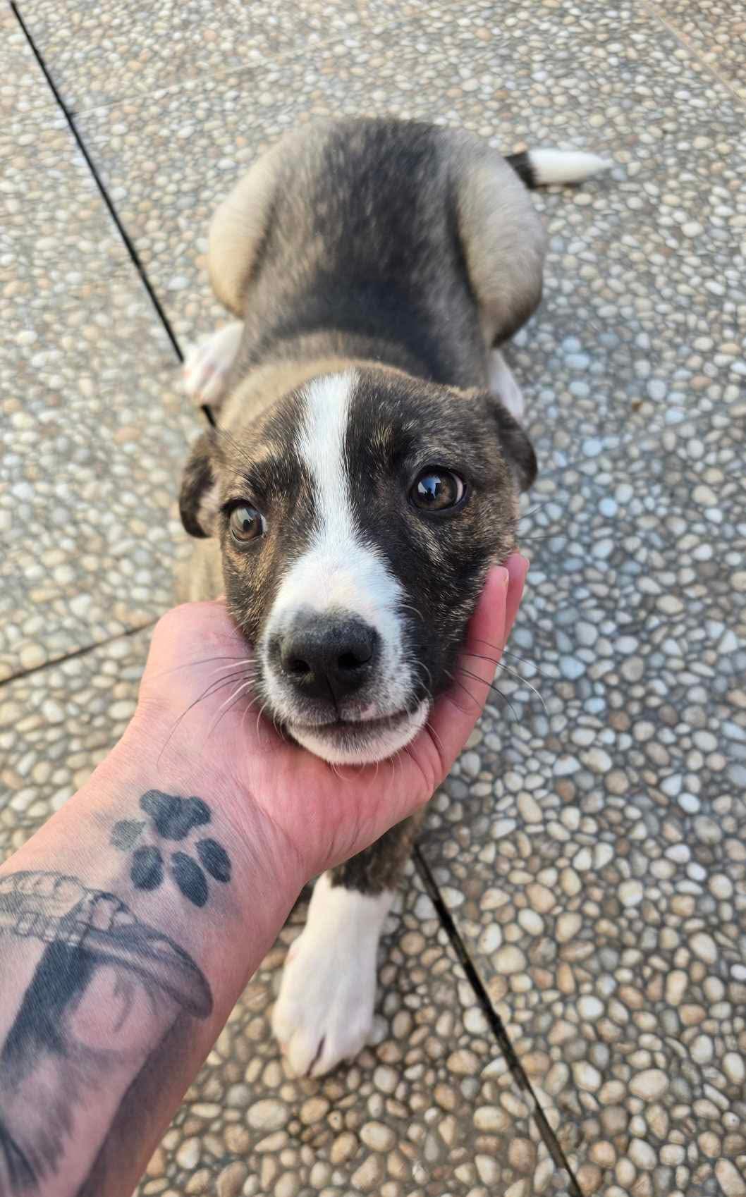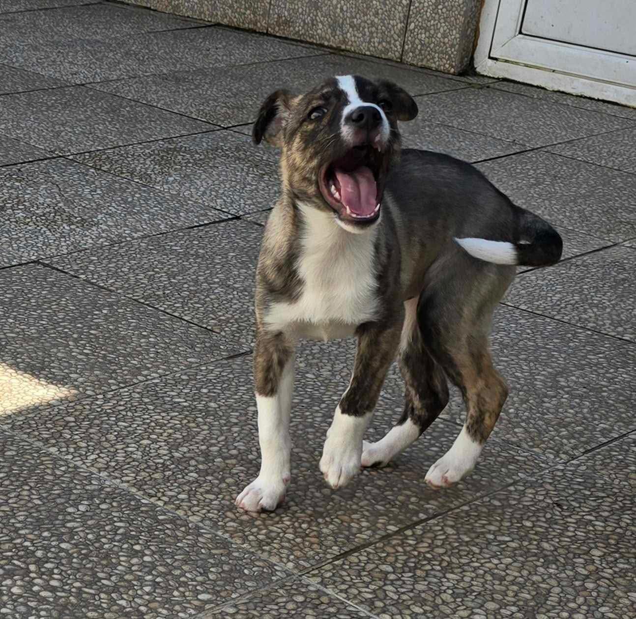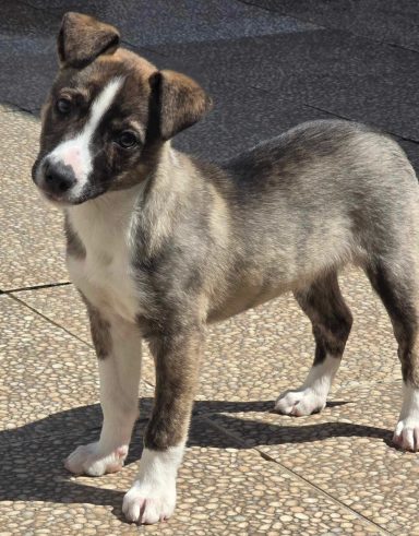 Heute ist er ein junger Rüde von rund 10–12 kg, etwa 11 Monate alt, freundlich, verspielt und voller Lebensfreude… doch sein Leben spielt sich immer noch im Shelter ab.