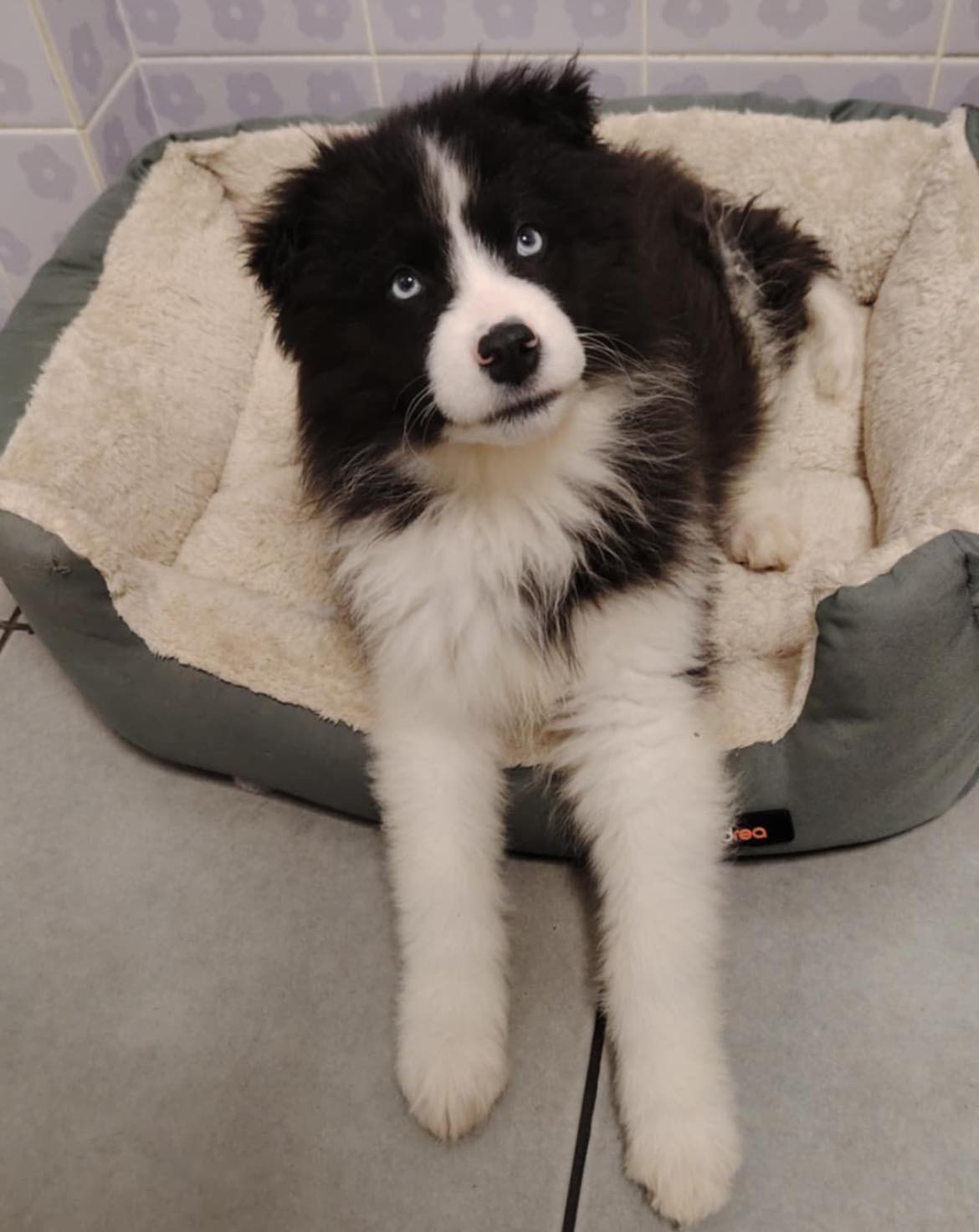Filou ist ein männlicher Welpe mit einem ganz besonderen Blick: seine strahlend blauen Augen gehen direkt ins Herz. Er ist ein zuckersüßer, neugieriger und freundlicher kleiner Kerl, der trotz allem Vertrauen in die Menschen zeigt.