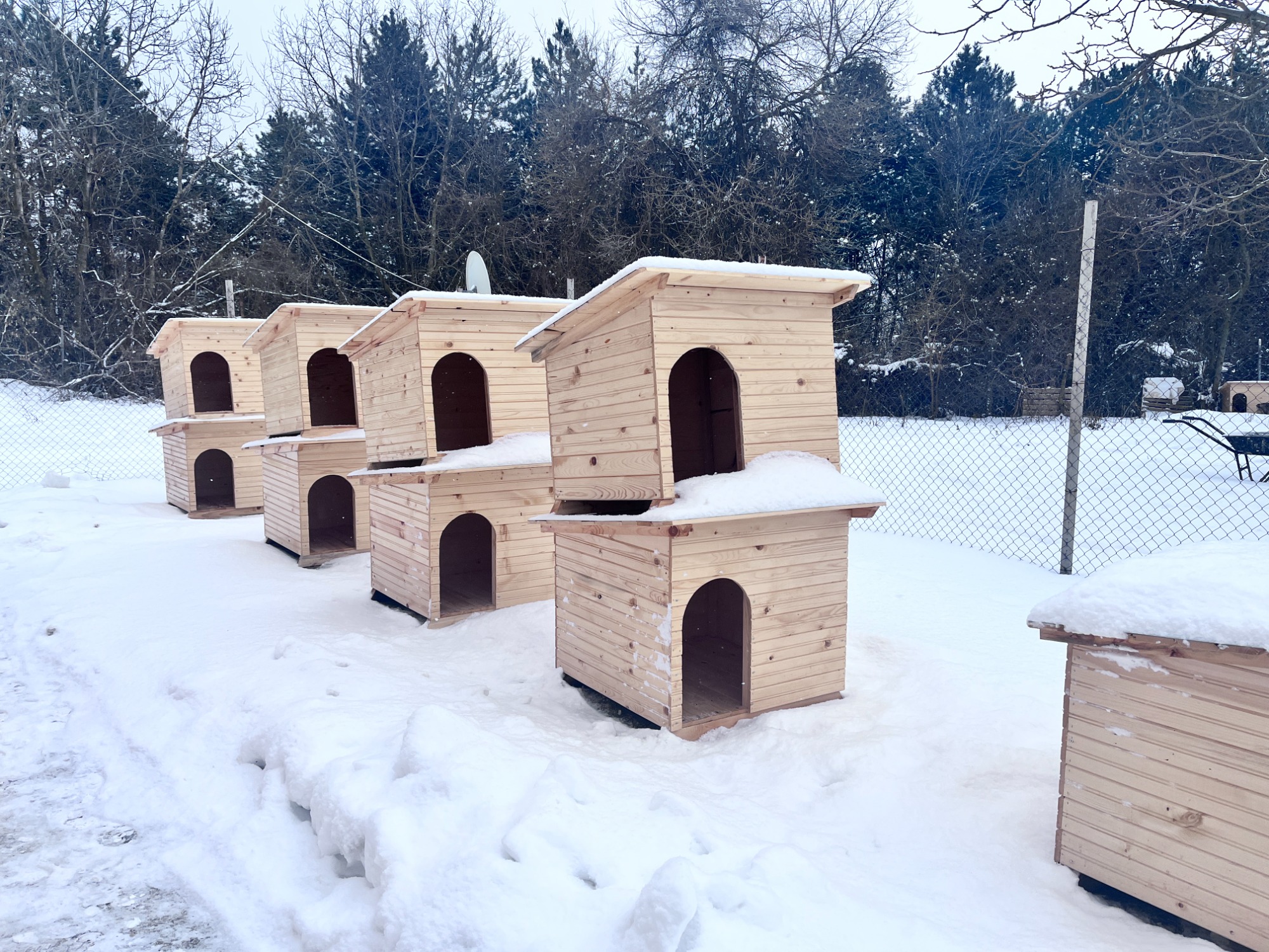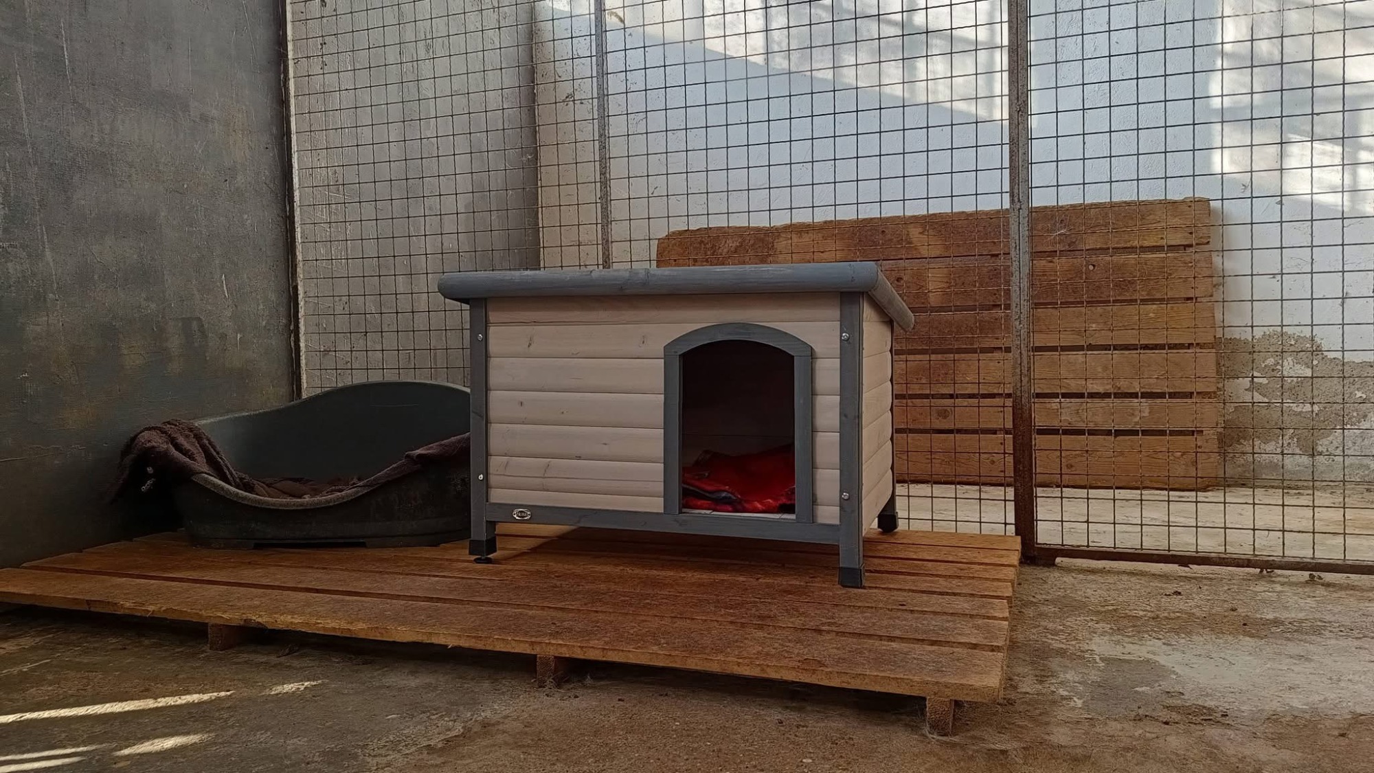 Ein weiterer wichtiger Schritt war die Verbesserung der Unterbringung, insbesondere für die Hunde, die im Außenbereich leben. Viele von ihnen waren bisher ungeschützt Wind und Wetter ausgesetzt. Dank gezielter Unterstützung und Spendenaufrufen, konnten wir Hundehütten zur Verfügung stellen, die den Tieren nun Schutz, Rückzugsmöglichkeiten und ein Stück mehr Sicherheit bieten.